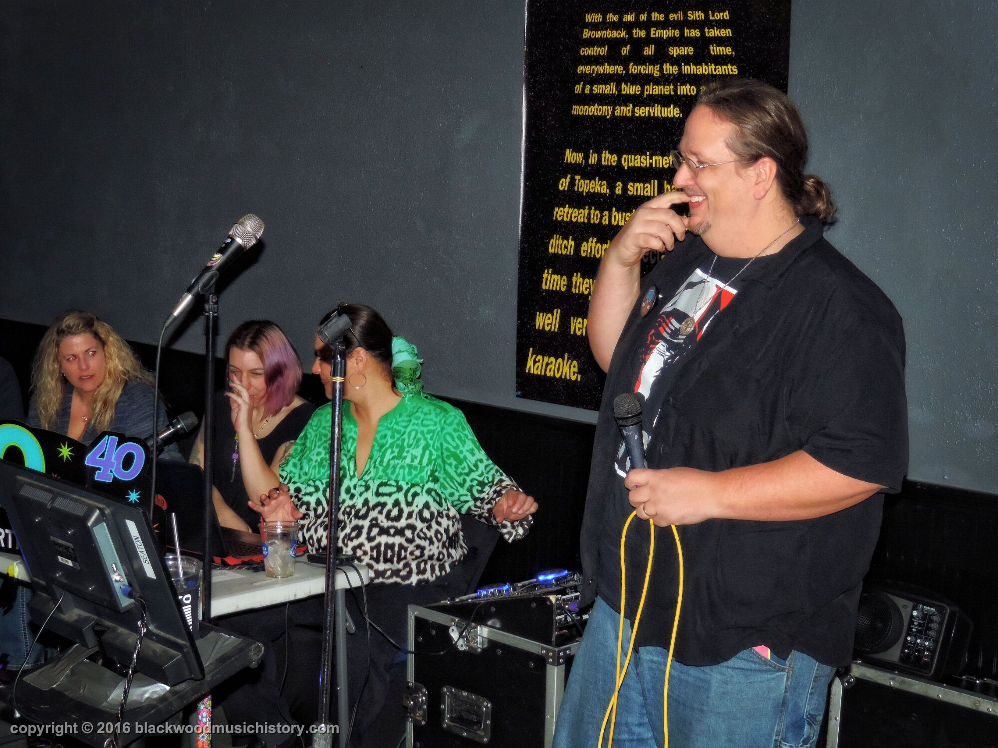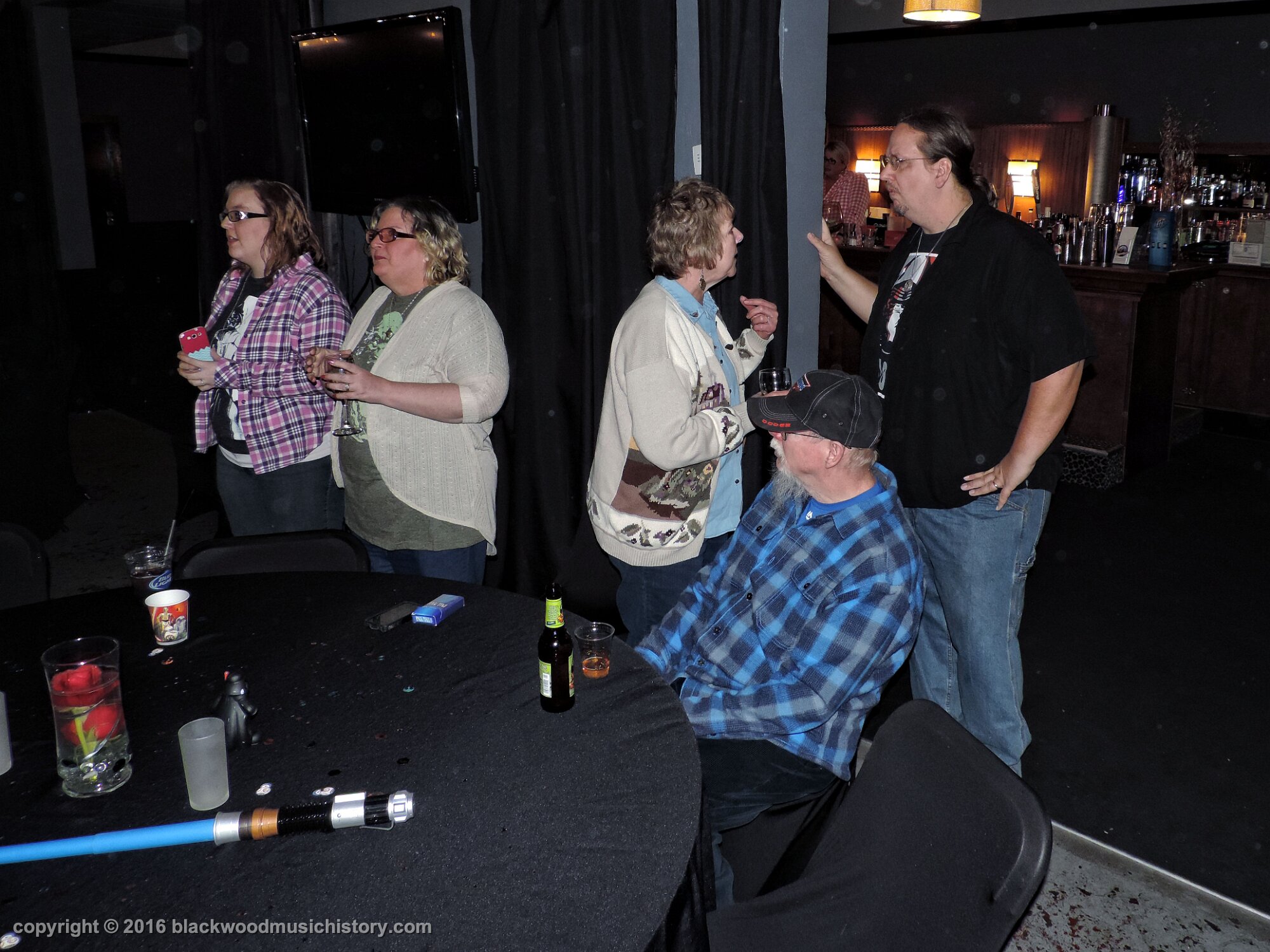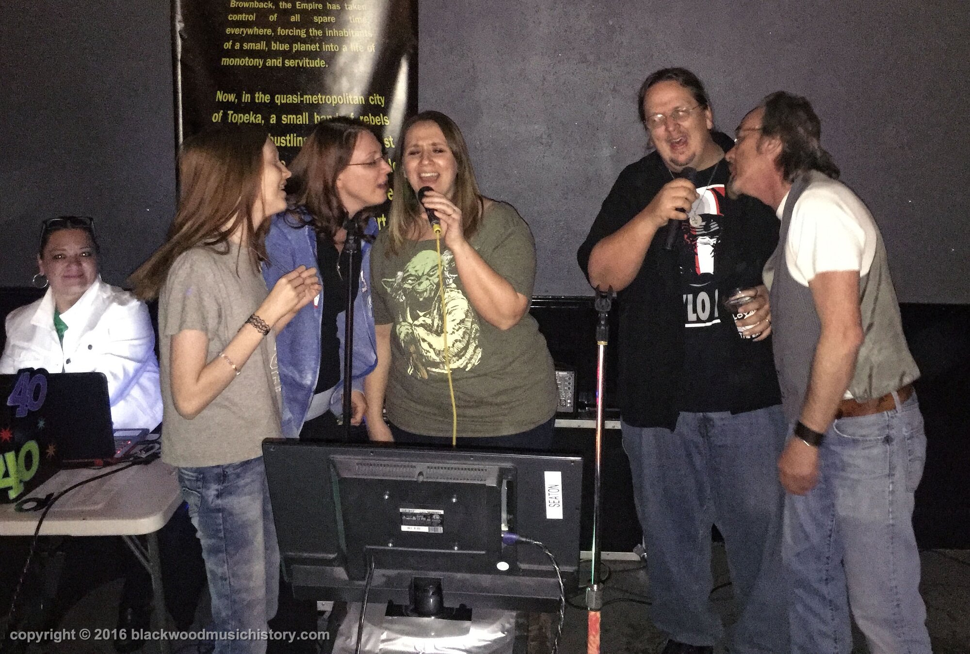 Video of Jake's entrance to the party. Lots of folks showed up, soem driving a long way, like Rob and Lori Gibson (on the right talking to Chris and Roxanne) who drove from McPherson. The always lovely Charline provided the Karaoke. She literally had only minutes to get there to setup. Her band Velvet Blues Revue played at a benefit celebrating the life of Ian Hopper at the Celtic Fox at 5:30pm! and then flew to Serendipity for this party. U ROC, CHAR!