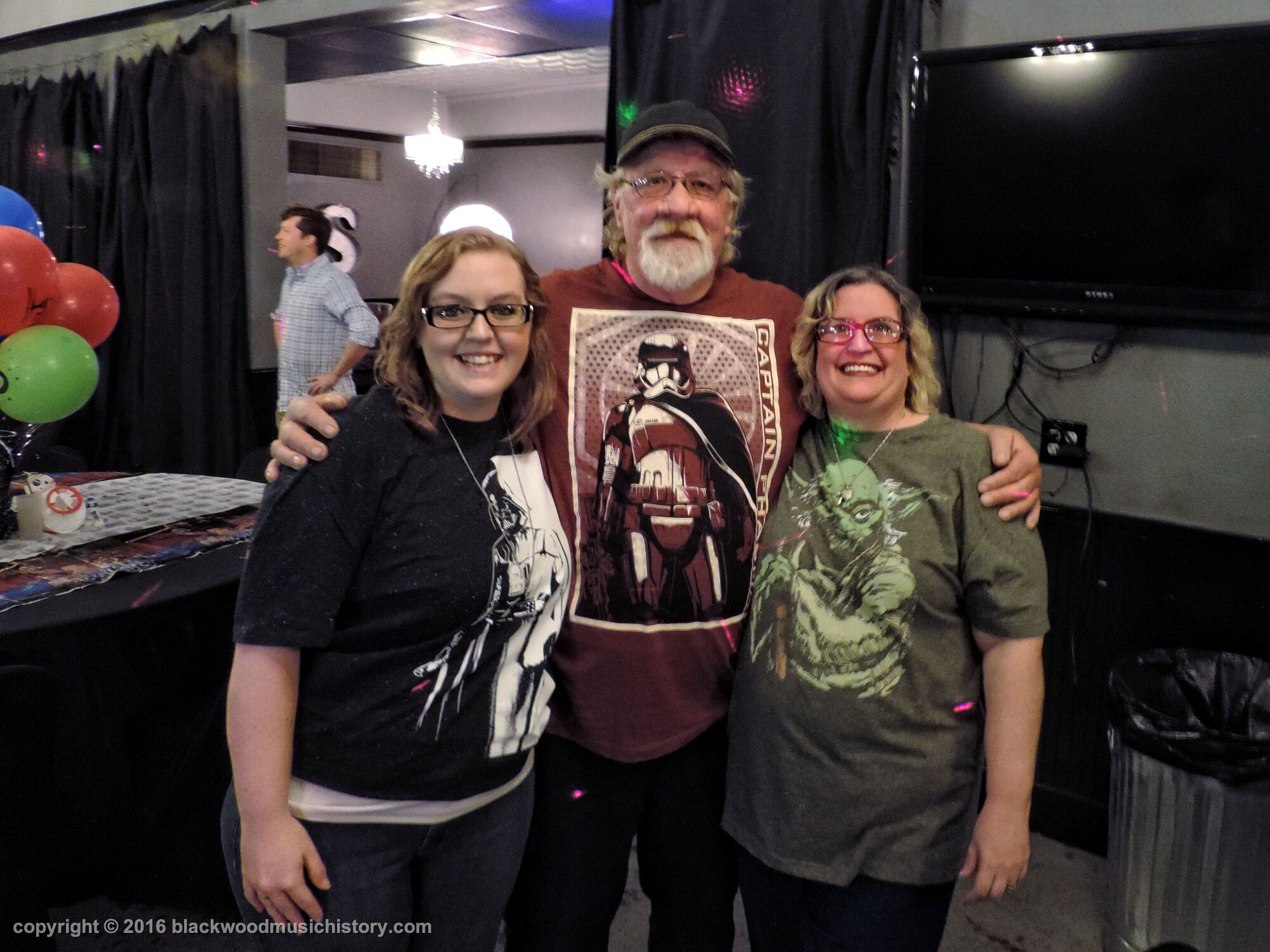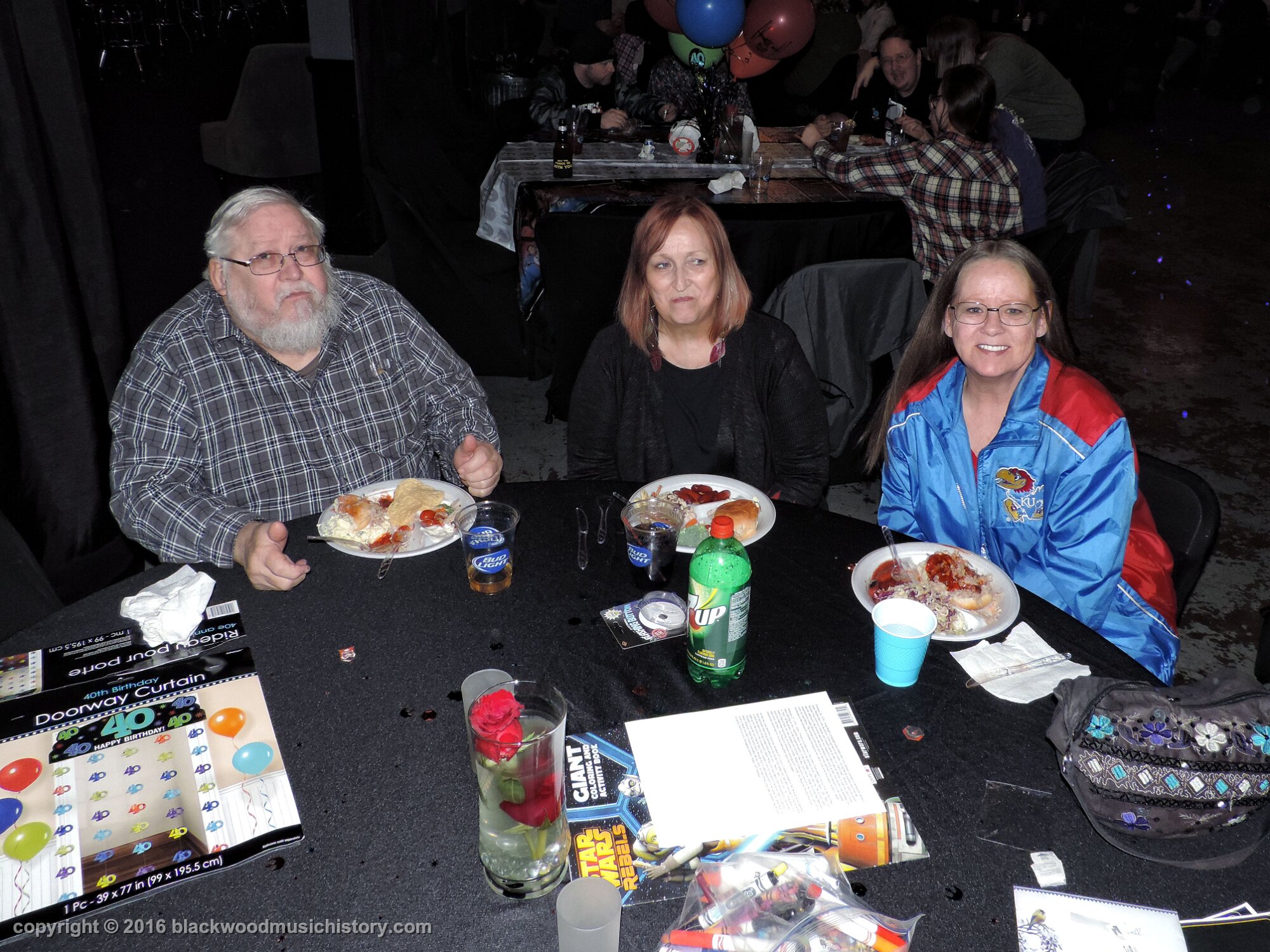 Party Time! More guests! (l. to r.) Roxanne's brother Chris DeGraw, Jake's mama Roxanne, and my sister Patti Blackwood.