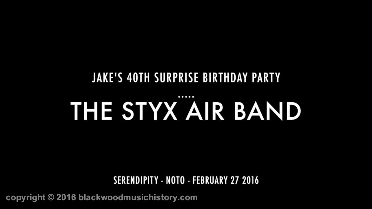 Brief clip of Jessie and Roxanne singing Blue Bayou. Me with my godson and his son Hayden at Jake's 40th birthday party. The incredible Styx Air Band performing Suite Madam Blue.